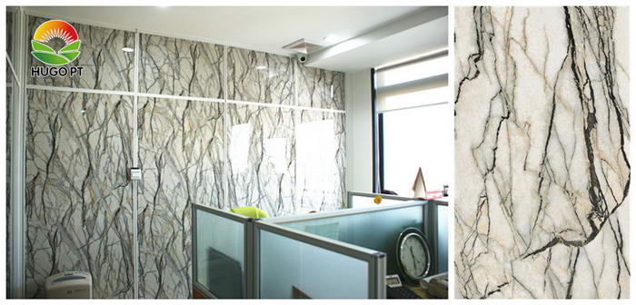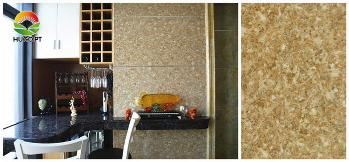 具有天然大理石/木紋/純色/定制圖案等效果,紋路清晰,顏色均勻,避免了大面積裝飾時(shí)天然大理石/木材的色差,表面光滑,耐磨,硬度高可達(dá)3H-6H,易清潔,耐污染,A級(jí)防火,綠色環(huán)保,無輻射,質(zhì)量輕,重量是天然石的1/5,價(jià)格是天然石的1/10。